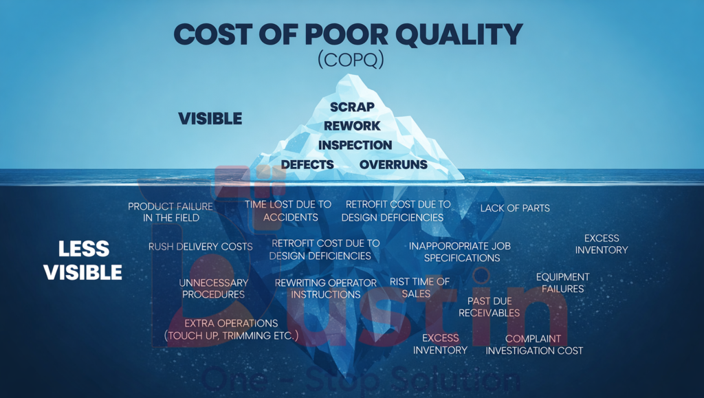 Trong thực tế, nhiều nhà máy chỉ ghi nhận chi phí kiểm tra mà không tính đủ chi phí dừng máy, chậm giao hàng hoặc mất uy tín thương hiệu. In practice, many factories record inspection costs but fail to account for downtime, delayed delivery, or brand reputation loss.